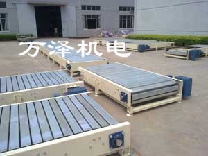 鏈板輸送機(jī)以標(biāo)準(zhǔn)鏈板為承載面,由馬達(dá)減速機(jī)為動(dòng)力傳動(dòng);可通過(guò)多列鏈板并行,使鏈板輸送機(jī)做的很寬并形成差速,利用多列鏈板的速度差,使多列輸送在無(wú)擠壓的情況下變?yōu)閱瘟休斔?,從而滿(mǎn)足飲料貼標(biāo)、灌裝、清洗等設(shè)備的單列輸送的要求,也可以將兩條鏈板輸送機(jī)的頭尾部做成重疊式的混合鏈?zhǔn)沟闷浚ü蓿w處于動(dòng)態(tài)過(guò)度狀態(tài),使輸送線(xiàn)上不滯留物料,可以滿(mǎn)足空瓶以及實(shí)瓶壓力和無(wú)壓力輸送。